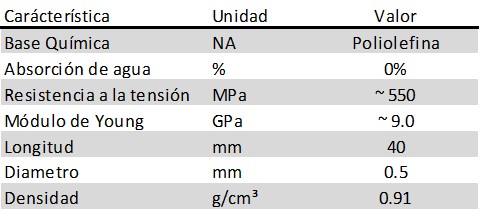 Dosis recomendada de 0.5 Kg/m3 para sustituir la microfibra y de 1.0 Kg/m3 para sustituir la malla electrosoldada 6x6-10/10.